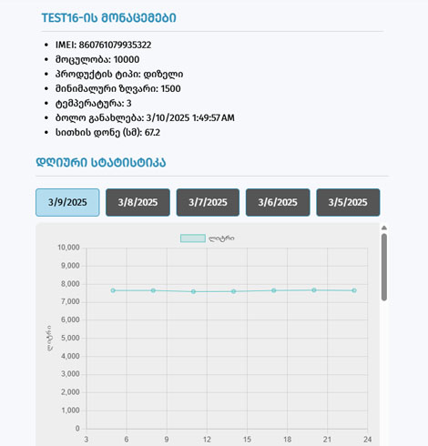 Когда устройство работает от внешнего источника питания, оно отправляет информацию каждые 10 минут, а если электричества нет и устройство работает от батареек, в этом случае информация отправляется каждые 3 часа. (Также следует отметить, что если заряд батареи опустится ниже минимального порога, устройство оповестит нас об этом и без вашего вмешательства наш представитель приедет к вам на объект и заменит батареи совершенно бесплатно) Что касается истории, то в вашем распоряжении история всей информации, отправленной устройством с момента его включения и по настоящее время. Историю вы можете просмотреть на своей личной странице.